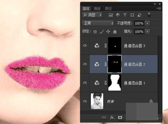 选择“通道混合器”的蒙版--->涂抹白色背景