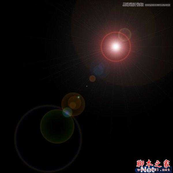 新建一个层,填充黑色,点击"滤镜>渲染>镜头光晕"并设置下面的照射角度