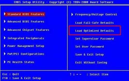 2、在BIOS界面中,将光标移动到“Load Optimized Default”项,并按回车键;