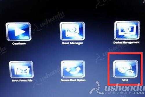2.选择右下角的 scu,进入bios设置。如图所示: