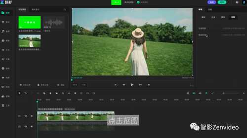 下一步我们需要选中图片素材,然后我们再次点击抠图,这次我们要选择色度抠图哦,选择完成后,我们进行取色,吸取图片中的绿色,将强度拉满至1.00,就可以啦。