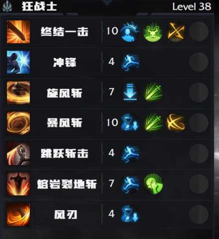 终结一击7点、冲锋4点、旋风斩1点、暴风斩7点