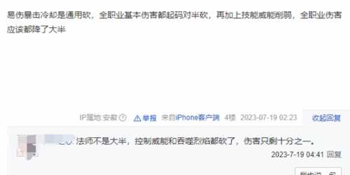 法师面临的最大问题之一就是烈焰吞噬技能被削,这个技能对该职业至关重要,是打出输出的重要技能。其它一系列的削弱也对build造成很大影响。玩家们都在吐槽被砍后,法师低到离谱的输出:“法师已经变成按摩师了。”甚至有玩家已经对暴雪失望,要删除游戏了。