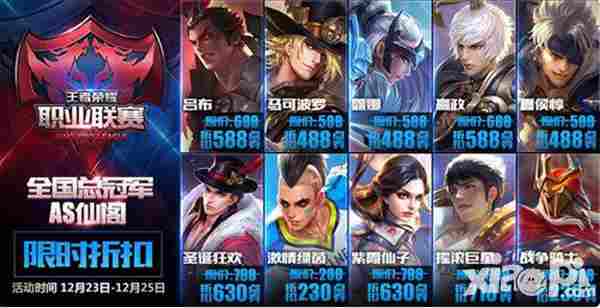 圣诞狂欢第二弹——KPL大回馈:冠军精选阵容限免,英雄及皮肤折扣!