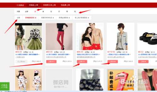 7、然后网页跳转到上架页面,可以按,大类“衣、食、住、行、用、玩,自主选择要上架的商品,点击,商品图片下面有“上架”功能,选好商品,(注意一次只能发布20个,发布更多,按此步骤重复发布即可,商品上架数量没限制),然后点击”马上发布“。如图: