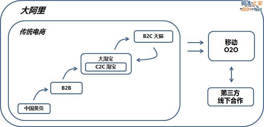 大家如果熟悉阿里的发展历史,就会发现阿里的战略实质是大平台战略。它先搭建一个平台,然后做大平台;到某个拐点时,会将平台升级,然后再做大。阿里最早的雏形是一个商品交易的网站,即阿里B2B平台。当平台稳定后,马云在03年创立了C2C淘宝平台,并成功实现本地化,赶走了当时不可一世的eBay。之后的5年,是淘宝平台的做大期。依附于大淘宝衍生出来支付宝、广告系统、微小企业贷款等相关业务,使阿里稳定盈利,并坐稳电商第一把交椅。直到08年,阿里建立了淘宝商城(后改名叫做天猫),做B2C业务。阿里随后打通了B2B、大淘宝、天猫、云服务等平台,并开始着手建设菜鸟网络,实施“大阿里”战略。至此,可以看做阿里在传统PC电商的布局基本完成。2013-14年,阿里又逐步开始了移动电商、O2O的布局(手机淘宝、投资微博、收购高德,与银泰联姻等)。
