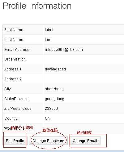 2:如图,点击 Edit Profile是修改个人资料,Change Password是修改密码,Change Email是改邮箱,进去非常简单的,就不上图了。