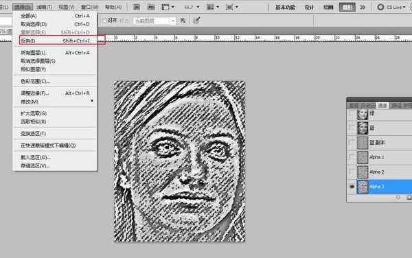 5、选择最下面的通道,按住ctrl选中选区,然后反选。