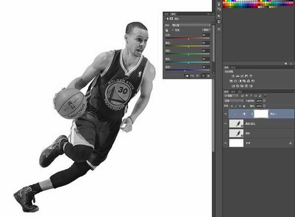 步骤三: 复制模特图层(ctrl+J)建立复本,将模特层关闭。 步骤四: 加入黑白调整剪贴层,参数默认