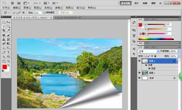10、设置好图片的卷页效果,然后按下crl+s键执行保存命令,如图所示