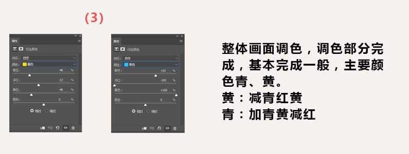 这次的教程主要以可选颜色调色和光影的理解为主,如何利用画笔出协调画面,利用画笔色彩叠加绘制光影,以下为操作步骤,其中第二步和第三步非常重要,也是本次教程的难点。