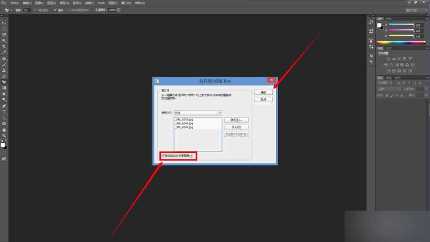 如果对自己足够自信的可以选择不勾选这个选项,否则请打勾,PS会帮你自动对齐你的照片,然后点击确定!