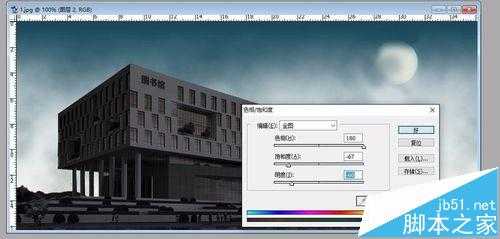 把建筑物复制到新的图层里面,再进行建筑物的色彩平衡度的修改,从而让图形表面的色调符合黑夜的效果。