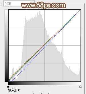 6、创建曲线调整图层,对RGB、红、绿,蓝各通道的暗部进行微调,参数及效果如下图。这一步给图片增加淡红色。