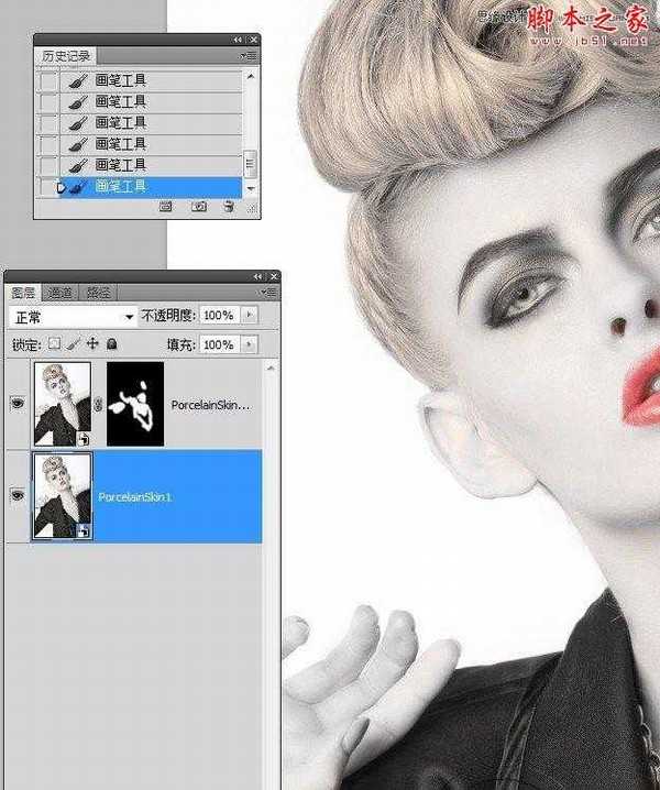 5。进入PS编辑,添加图层蒙版。使用白色画笔在红色皮肤区域涂抹。