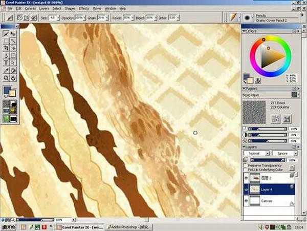 15.另存一个只有巧克力和威化两层的文件,这样画着比较方便。在威化层用油画棒画些纹理上去,纹理选择可以找合适的纸纹即可。