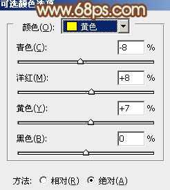 1、打开素材图片,创建可选颜色调整图层,对黄,绿进行调整,参数设置如图1,2,效果如图3。这一步给图片的背景增加一些暖色。