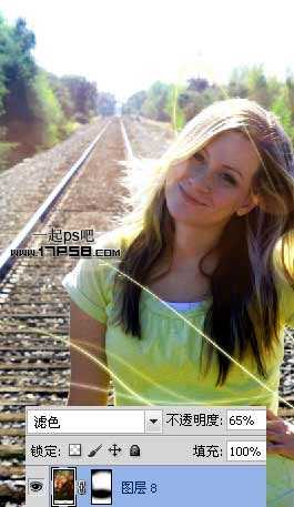 图层模式滤色,不透明度65%,添加蒙版去除多余部分。
