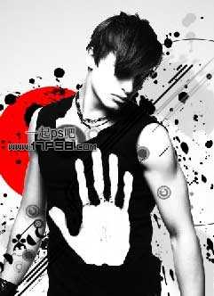 建新层,导入线条笔刷,在帅哥上身部位涂抹,然后再添加一些其他的卡通元素。