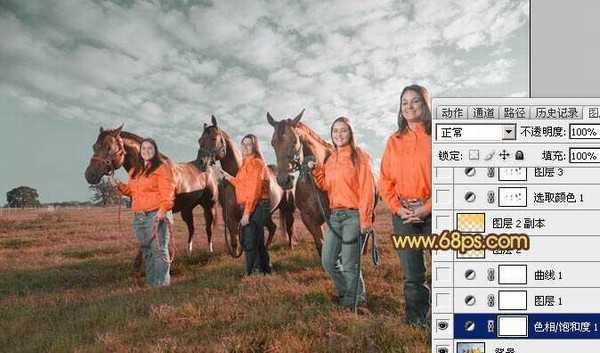 2、把当前色相/饱和度调整图层复制一层,不透明度改为:50%,效果如下图。
