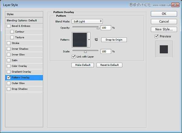2、双击智能对象背景图层,应用图案叠加效果,进行以下设置: