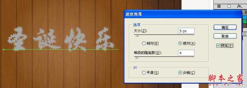 4、给字体图层做效果:外观下面的fx按钮,选择"扭曲和变换",选择“波纹效果”,参数设置如下,这个参数可以任意发挥