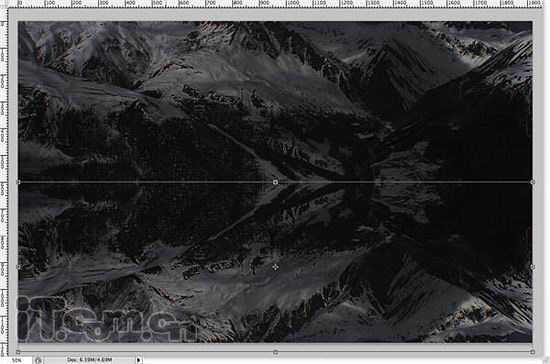 步骤4、复制选中的部分到新文档中,并使用“移动工具”把雪山的图层移动图片的顶部,如图所示。在这里雪山素材只要占图片的一半就好了,所以你可以按Ctrl+'打开网格,方便定位。