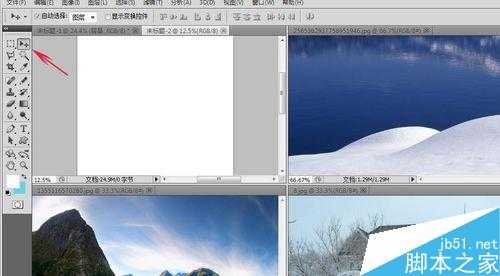 7、同理,将剩下的两张风景图,也都拖入空白画布中。然后又运用排列文档的功能,合并图片。