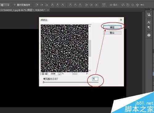 2、然后滤镜→像素化→点状化(单元格大小为5),按确定。