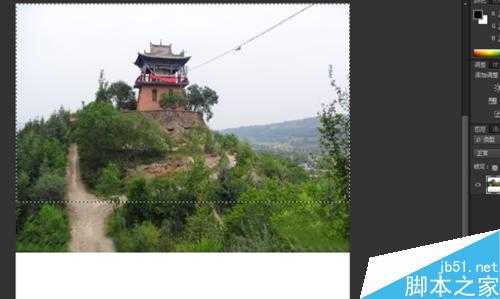 6、完事后抽根烟。事后一根烟,赛过活神仙。接着撸。用矩形工具选寺庙区域,然后ctrl +j。生成图层1