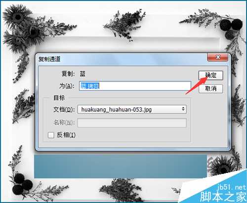 10、调整好之后,点击确定。下面就要把调整好的蓝拷贝通道载入选区。在通道面板下面点击将通道做为选区载入。这时可以看到现在在素材上面并没有把花的部分选中。而是选中的中间的白色。所以还要进行一个反选。