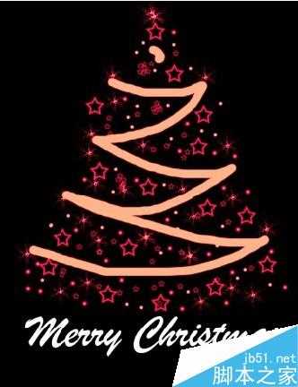 3、然后我们再打开画笔工具,笔刷选择为星星/小圆点/大圆点,然后在圣诞树的框架里面进行适当地点缀,然后可以用文字工具写上“Merry Christmas”哈,效果如图