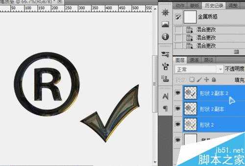 合并所有可见图层,一个金属质感的物品就诞生了。自己也可以根据需要添加形状的阴影等效果。