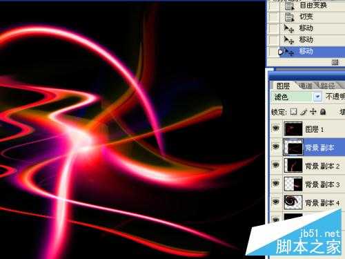 9、复制背景,制作光束。多重复几次这个步骤,也可以用扭曲选项中的其它滤镜来改变形状。最后就形成了类似图中的效果。保存文件。