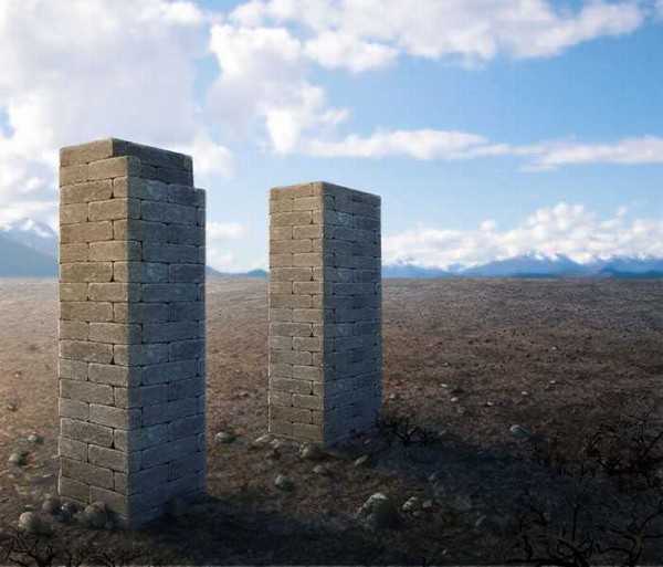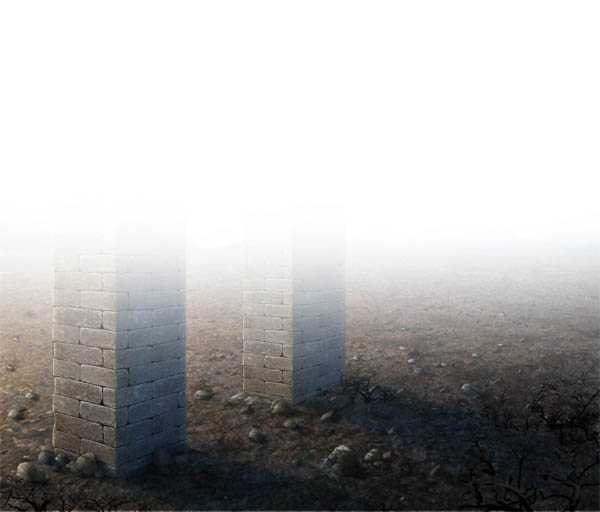6、创建图层蒙版,把砖柱部分涂黑,让砖露出来。