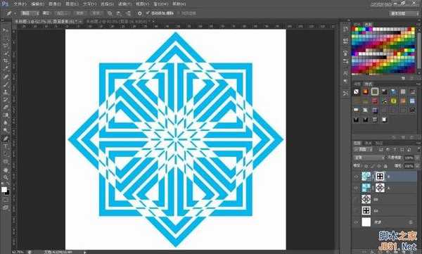 按CTRL+J把这个复制这个图层,CTRL+T后按住SHIFT精确的旋转45度。为了能直观明了的完成后面的工作,我给这两个图层分别命名,“田字形”的是A,另外一个为B。