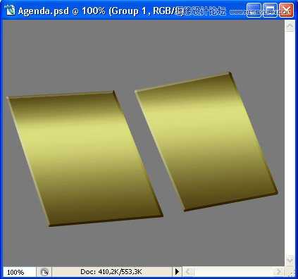 现在点击确定。然后右键单击Cover 1图层(就是我们刚刚添加过样式的那个),然后选择”复制图层样式”。然后在图层面板中右键单击Cover 2图层, 然后选择”粘贴图层样式”!现在我们有一副金色书封了。