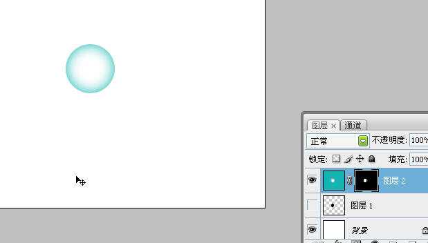 六 再次载入图层1选区,图层3上执行菜单—图层蒙版〉隐藏选区命令,得到球体阴影,如图。