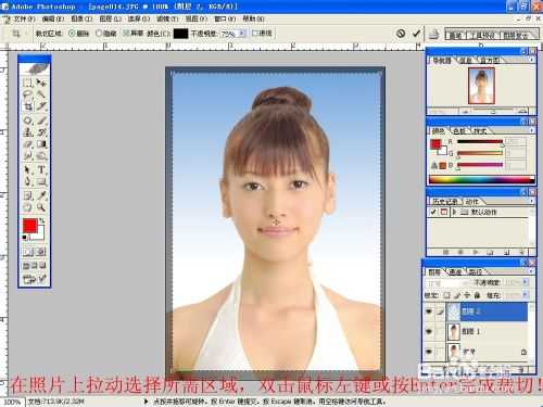 4、在照片上拉动选择所需区域,双击鼠标左键或按Enter完成裁切!!! 想取消裁切时可按 Esc 取消!