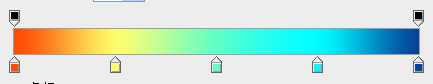 色标从左到右依次为:#ff4905、#fdfc6b、#60fec7、#00fcfe、#054299;色标的位置分别为:0%、25%、50%、75%、100%;效果大概是这样的: