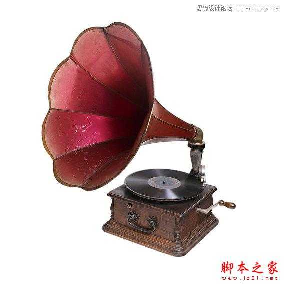 3、把留声机运用色相饱和度调整色调(略),显得明亮和雅色一些。加上阴影。