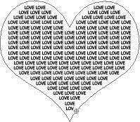 4、现在我们先将文字工具停留在心形之内(光标为),然后单击,出现文字输入光标,输入一些文字。如“LOVE”(注意每个字母之后都有一个空格,原因稍后再述)。选择一个英文字体(如Tohoma),选择小一些的字号(如6px),并复制粘贴几次,使其充满整个图形(超出也没有关系),效果如下左图。此时看到文字在图形内的排列并不对称,接下来在段落调板中设置居中,并适当设置左缩进和右缩进的数值(如5px),这样看上去就较为舒适了。一般来说在封闭图形内排版文字,都要进行这些设定以达到较好的视觉效果。如下右图。