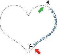 3、现在选择文本文字工具,并使其停留在这个心形路径之上,依据停留位置的不同,鼠标的光标会有不同的变化。当停留在路径线条之上时显示为,当停留在图形之内将显示为。请注意这两者的区别,前者表示沿着路径走向排列文字,后者则表示在封闭区域内排版文字,作用是完全不同的。