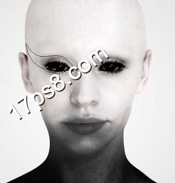 下面添加烟熏妆,新建图层用钢笔做如下选区。