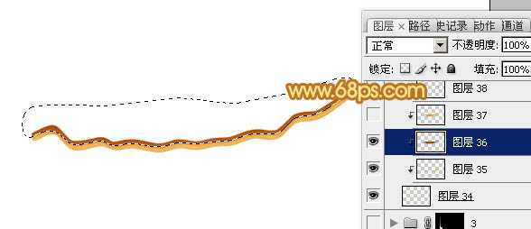 6、在组的最上面新建一个图层,用钢笔勾出第二节麦秆选区,填充橙黄色:#FAD16E,如下图。