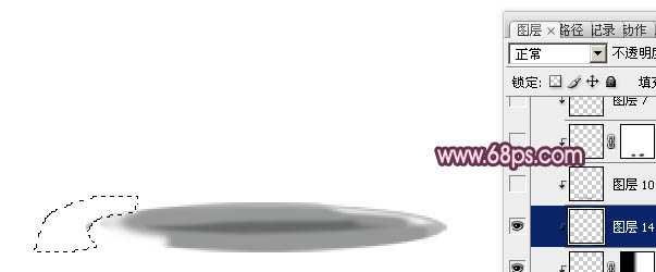 13、新建一个图层,按Ctrl + Alt + G 与前一图层编组。然后在当前图层下面新建一个图层,用钢笔勾出下图所示的选区,填充暗灰色。