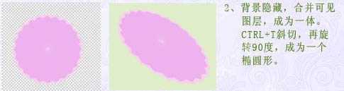 2、本背景图层隐藏,然后合并可见图层,按Ctrl + T 稍微拉斜一点,再选择90度成为一个椭圆形。