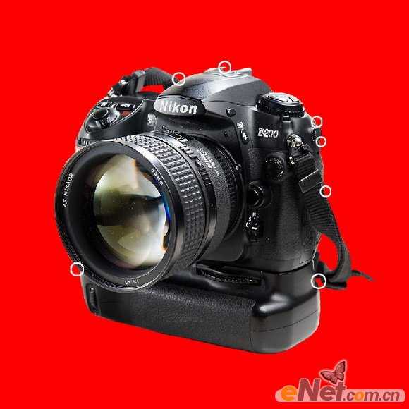3、涂抹照相机周围,并放大和缩小同时调整笔刷大小获得足够的效果。更加注意的地方-也是最为关键的是下面的白色圆圈所示。在这里,您应该仔细调试。你可能需要反复多试几次,达到满意效果为止。