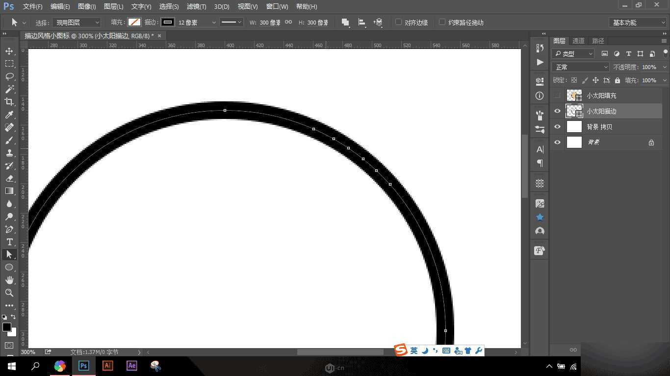 在追波网上看到MBE大神的描边小图标很是喜欢,就自己网上搜索学习怎么绘制这种风格的图标,这里就是将我练习的方法做一个总结,关键就是布尔运算和路径锚点,好了废话不多说,我们从最简单的小太阳开始!!!