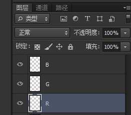8、R、G、B这三个图层都填充好后(顺序可以随意),总之将最上面的两个图层的叠加模式改为滤色,最下面的叠加模式为正常